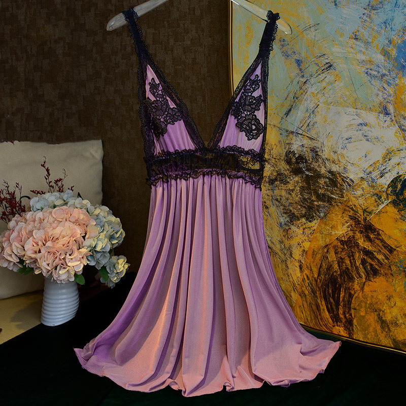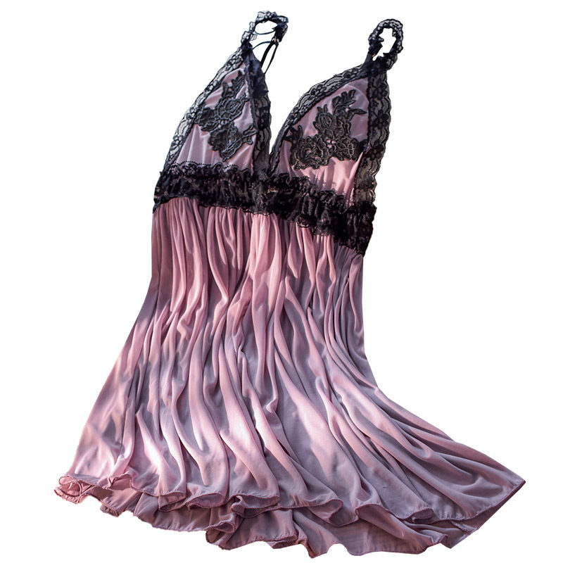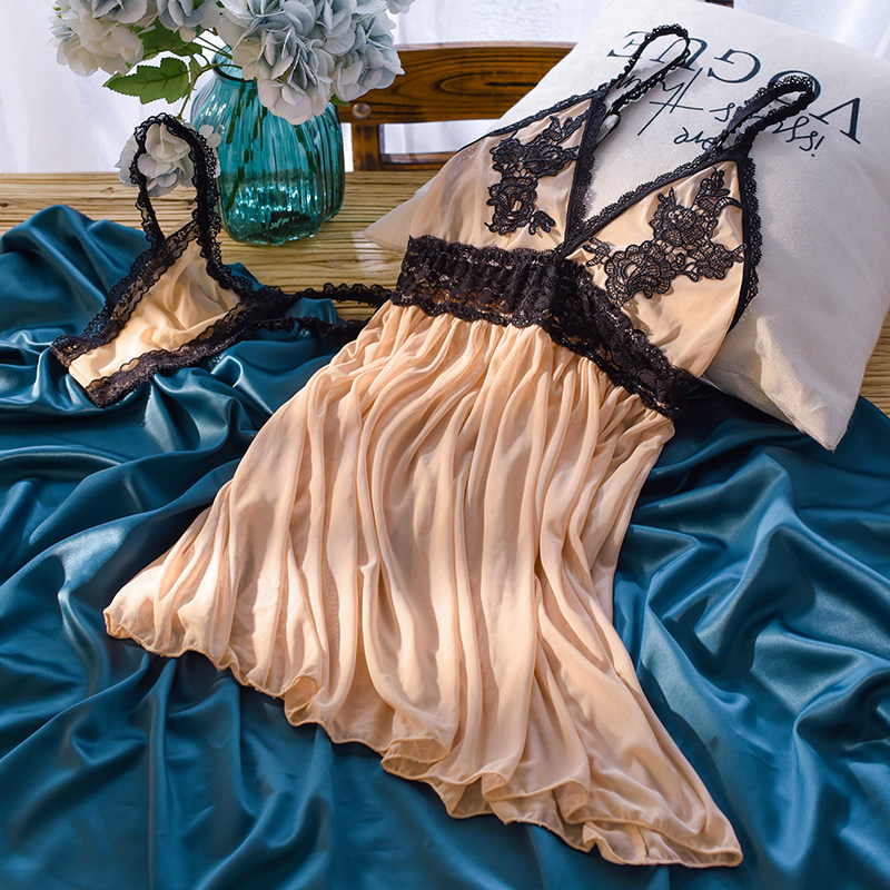 Peach neon summer sexy ultra-thin mesh fabric thin sling embroidered lace nightdress suit