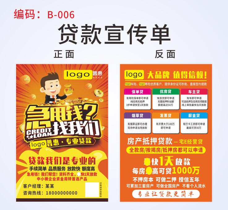 Ping An inclusive loan credit card publicity sheet New credit insurance policy loan against loan promotional color page double sided
