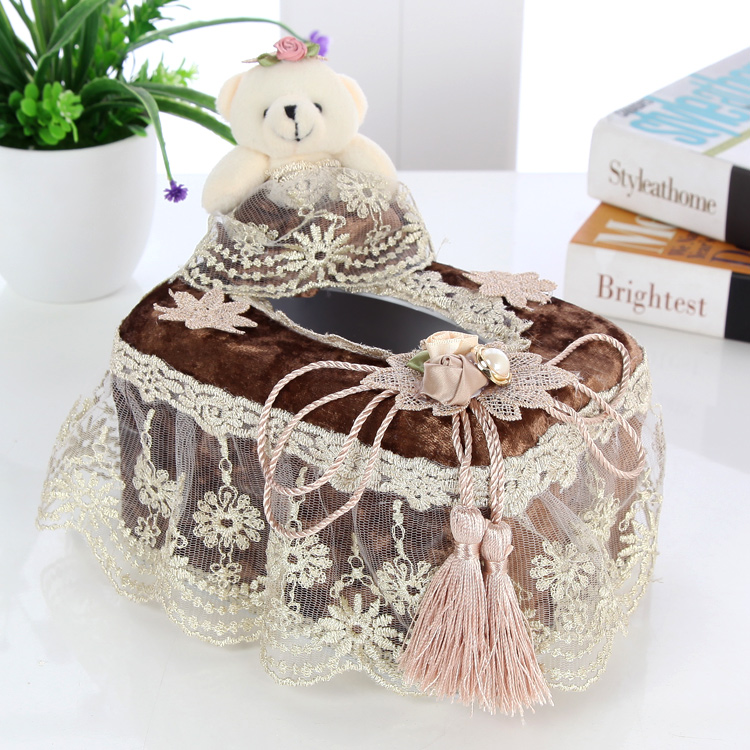 Fabric home napkin draw box simple car with draw paper box cute lace living room coffee table tissue box