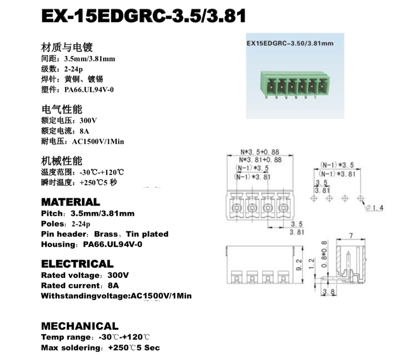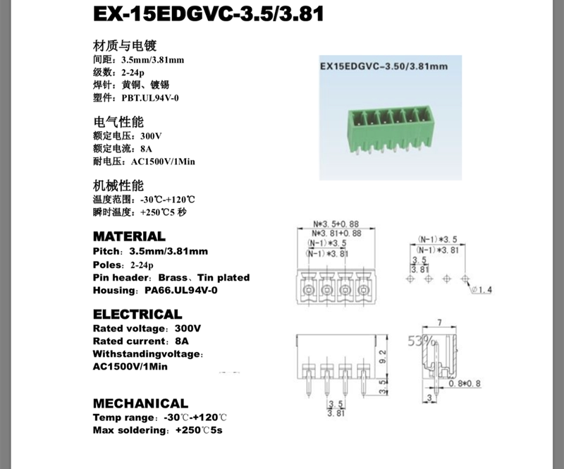 Plug-in terminal terminal EX KF15EDGRC-3 81MM 2EDGVC-3 81MM straight needle bending
