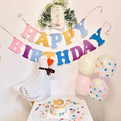 ins Net red macaron happy birthday pull flag boy girl baby year old decorative balloon layout background