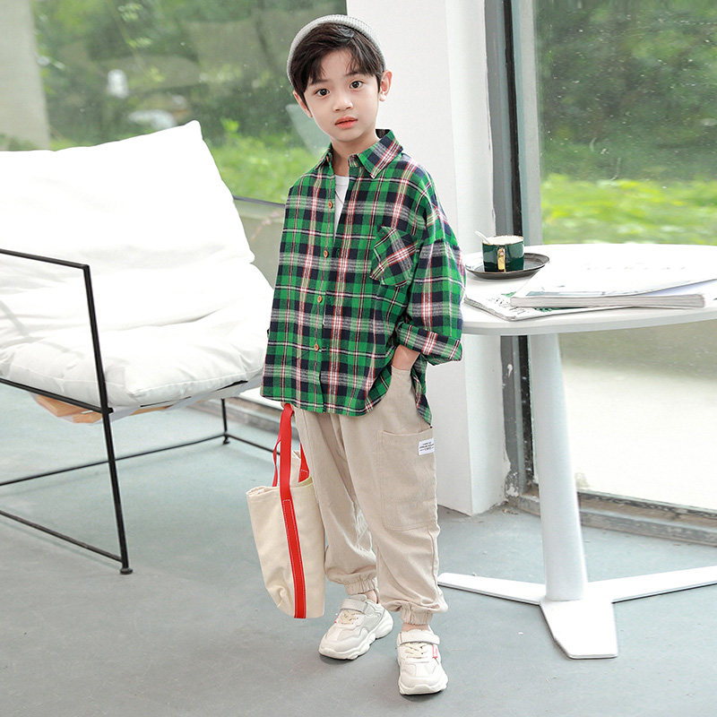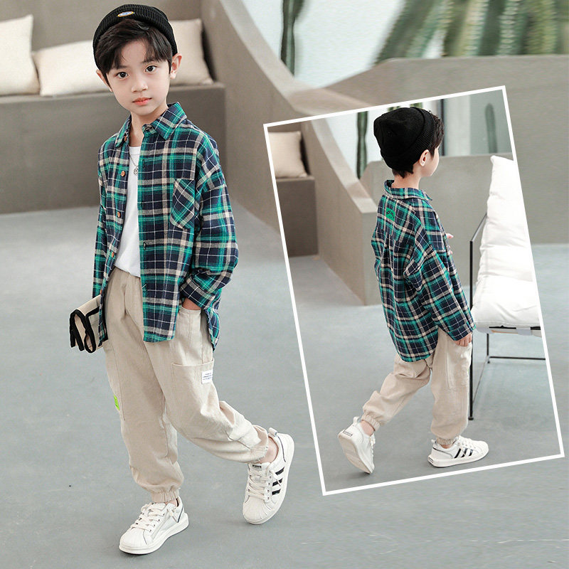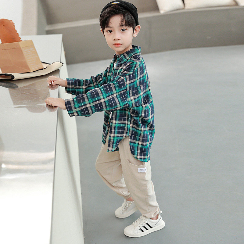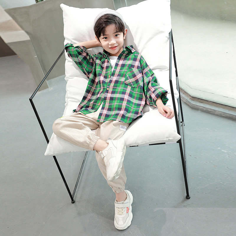 Children's shirts Men's 2022 Chunqiu boys Long sleeves Plaid shirts CUHK Scout blouses children loose children's clothing