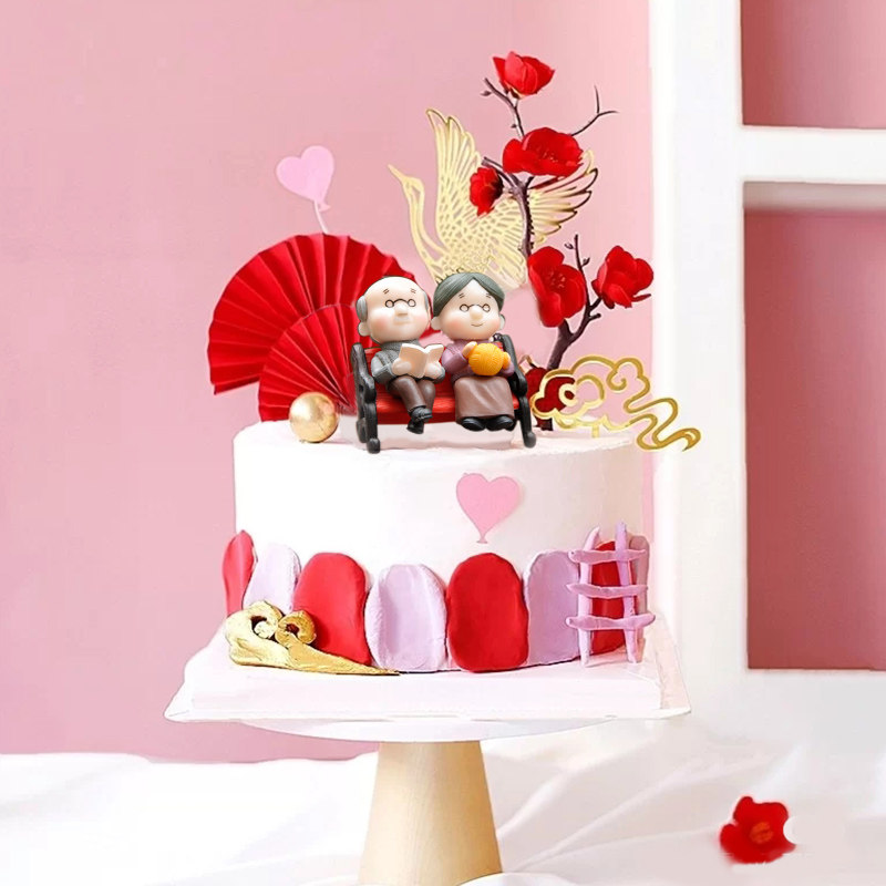 Wishing a birthday cake to decorate the fortune of the Caifu such as the East China Sea Shou Bianchi Nanshan Plug-in Fairy Crane Fu Suo Suo Doll Pendulum-Taobao