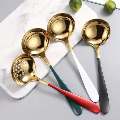 Japanese-style 304 stainless steel spoon household long handle large soup thickened small hot pot dish spoon Porridge Hot pot colander