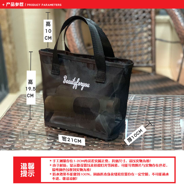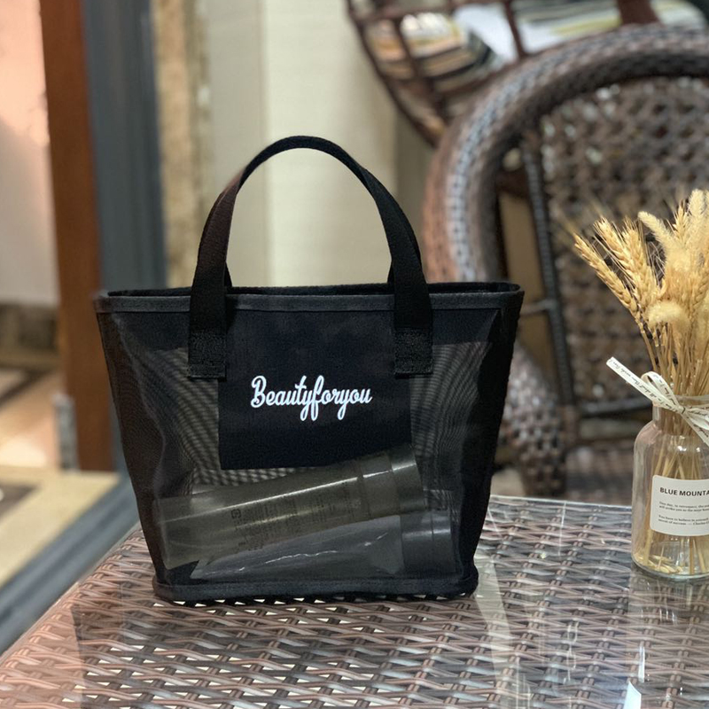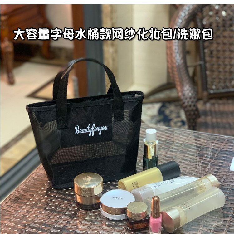 Korean Version Letter Carry-net Yarn Bag Large Capacity Makeup Bag Hollowed-out Fashion Hand Carry Bag Travel Cosmetic Wash Bag
