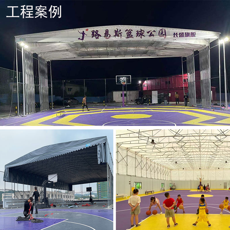 Customized push and pull mobile basketball court badminton tennis court floor large sports shading sun protection