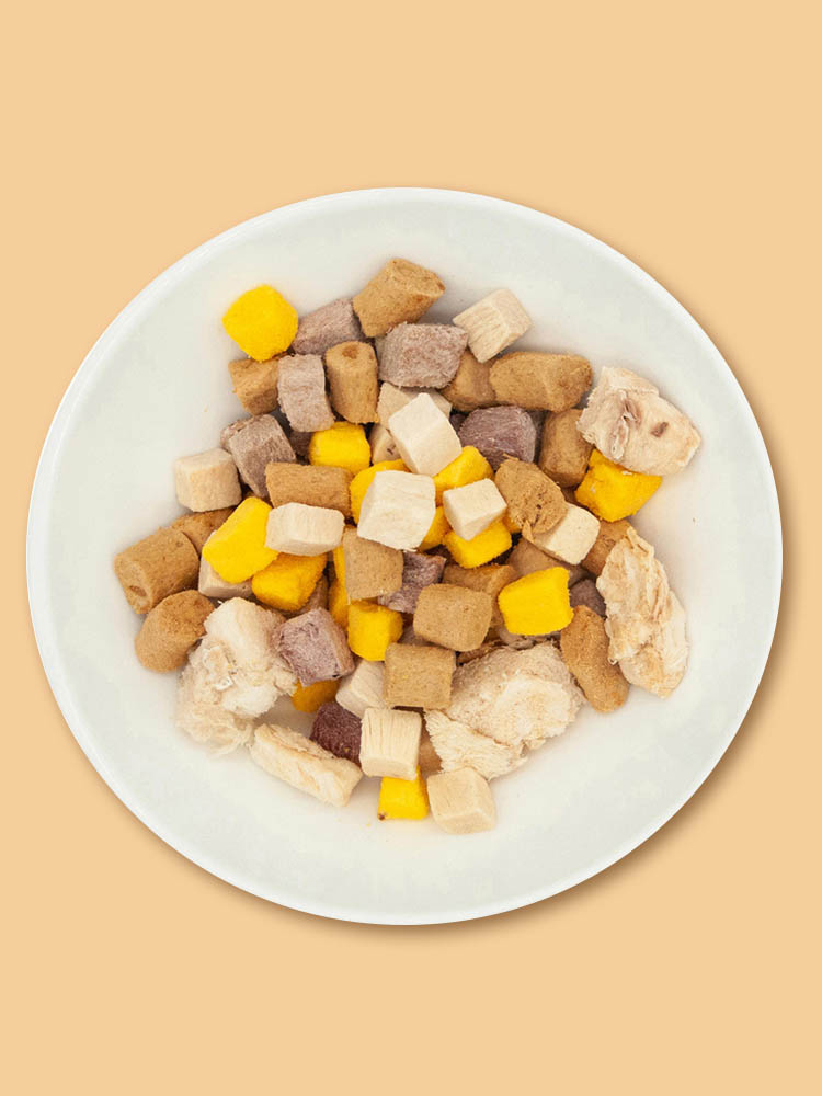 Chicken 100g duck 100g beef 100g staple food freeze-dried (salmon beef) 100g cod 50g chicken and duck mix 100g chicken and beef mix 100g chicken 500