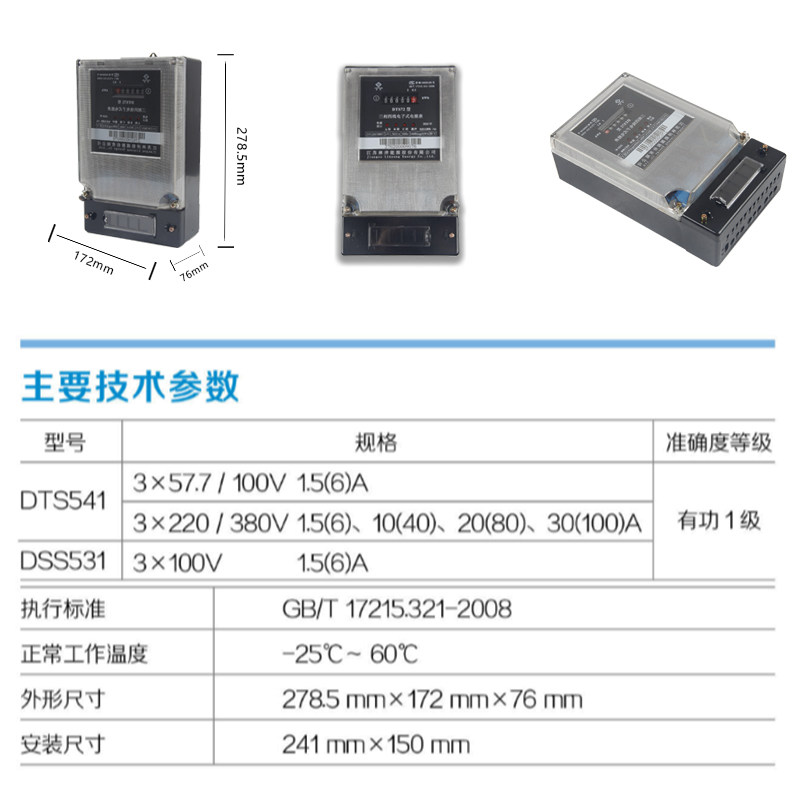 Jiangsu Linyang electric meter DTS72 type AC energy meter Electric meter three-phase four-wire electric meter Active electric meter