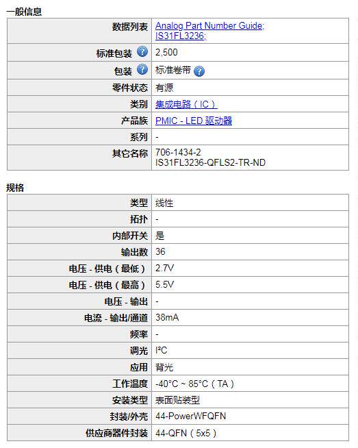 IS31FL3236-QFLS2-TR has the demand for other models please consult customer service quotation