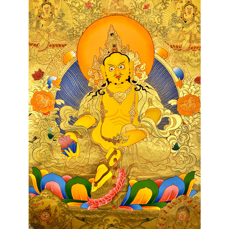 Donka Tibet Handmade Nepal Pure handmade lotus peanuts Master Huang Caishen Living room Hung Painting Town Residence and Painter