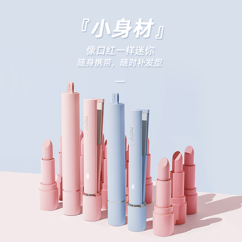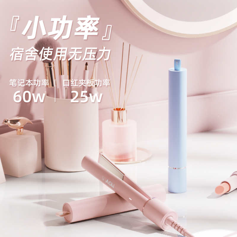 Blue Pink Mini Curling Iron Pink (Illustration Series) Joint Model Straight Curling Dual-use USB Interface (Pink) Pink Printing Model Gift Box Set (Pink Lipstick Splint Orange Lips