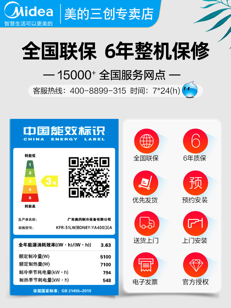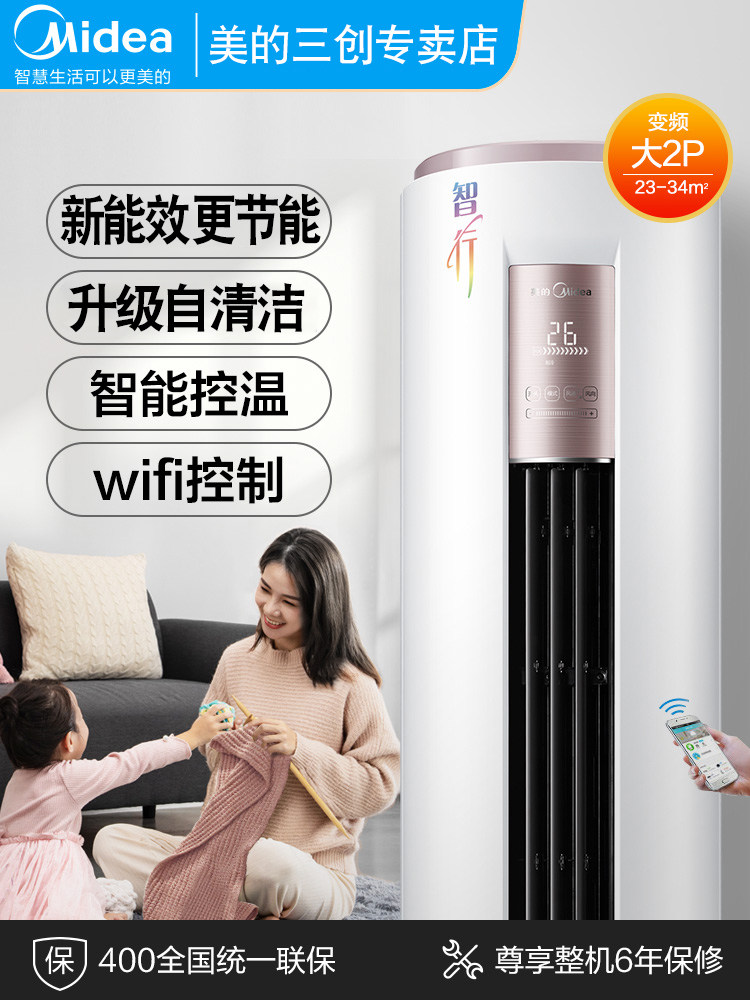 Midea air conditioner large 2 hp vertical smart home appliances frequency conversion cooling and heating cylindrical living room cabinet machine Xinzhixing 51YA400A