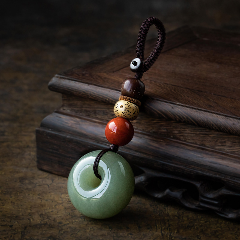 Park fang collection grade Hetian jade car keychain pendant high-grade safe buckle jade pendant personality creative gift
