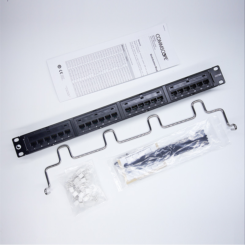 Class 6 24-port patch panel with module Super Five 24-port patch panel with module Commscope New Class 6 with metal frame Commscope new Super five with metal frame