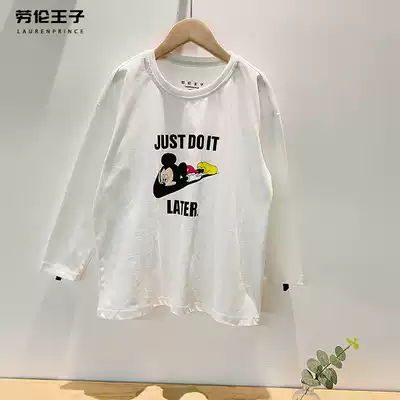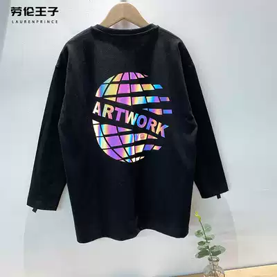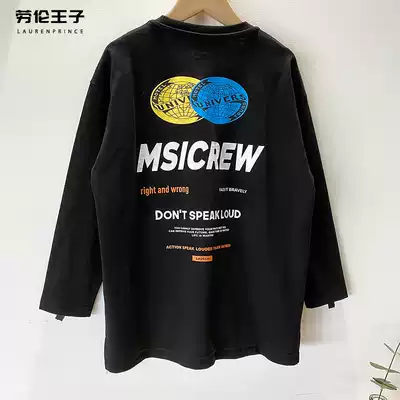 Boys ' long-sleeved T-shirt pure cotton middle and large children's black bottoming shirt children's 2021 autumn new boys spring and autumn tide brand