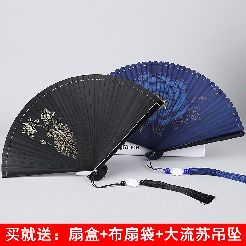 Luying colorful (send fan box cloth bag tassel) solid color black plus red (only send big tassel pendant) peony flower (send fan box cloth bag tassel) thin shadow horizontal oblique (send fan box cloth bag tassel)