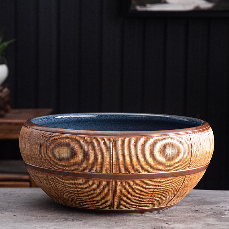 Jingdezhen ceramic flower pot hydroponic bowl lotus pot water lily copper money grass green lotus succulent flower pot living room ornament goldfish tank