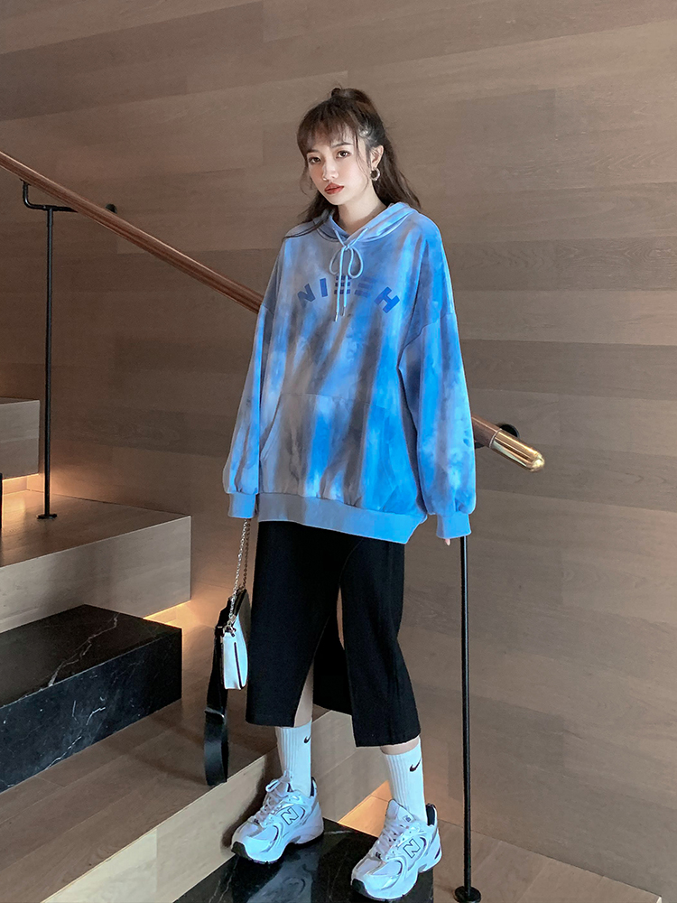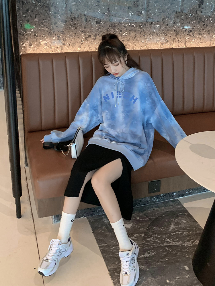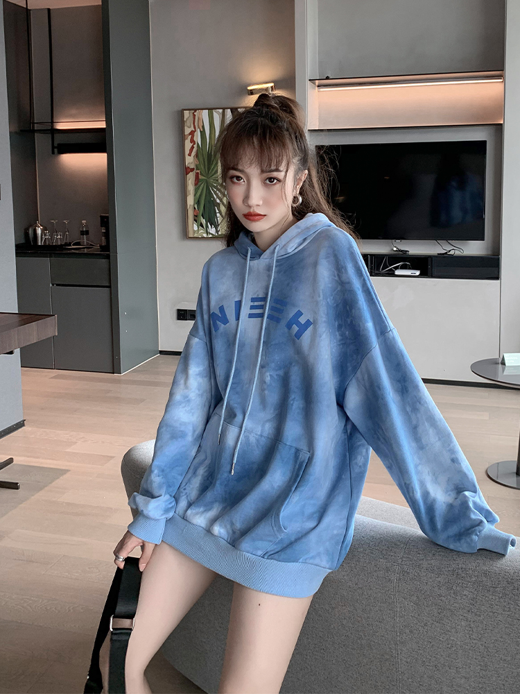 2022 spring and autumn new tie-dye hooded fried street sweater women's loose and thin Korean letter printing long-sleeved top trendy
