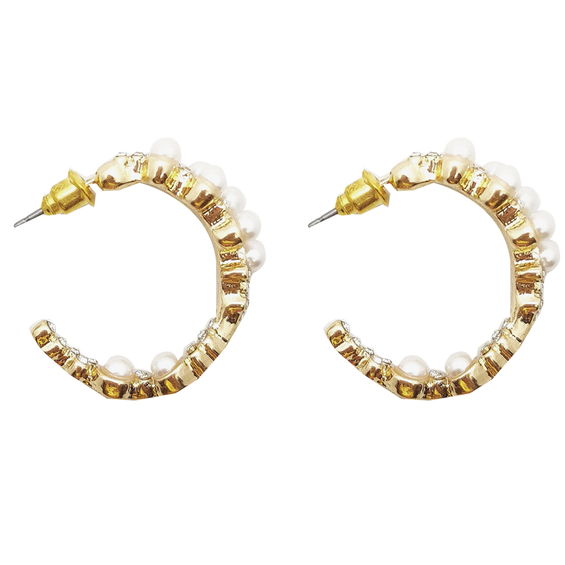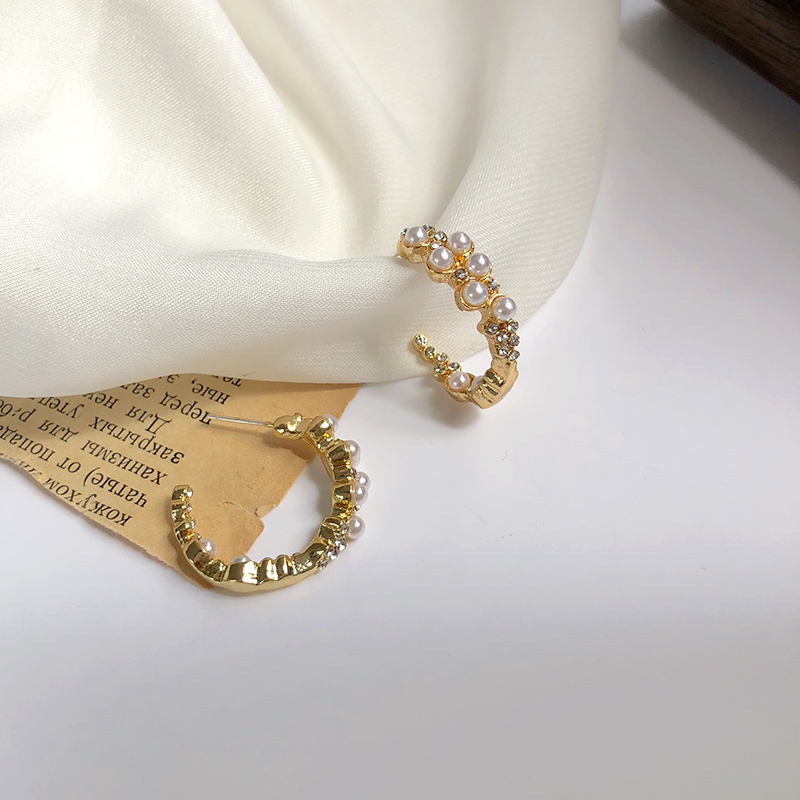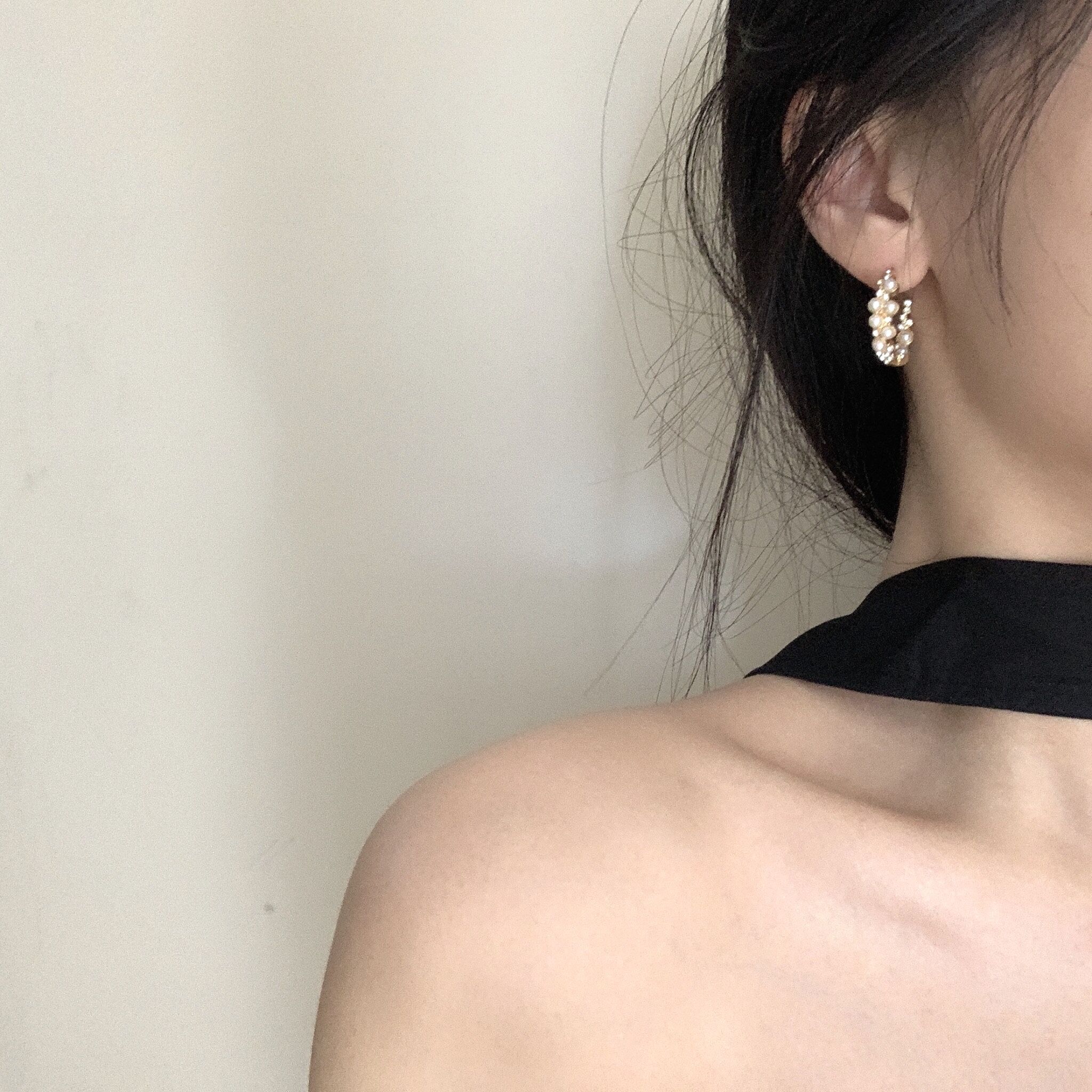 S925 silver pin personality minimalist C word ear temperament small crowddesign earrings elegant pearl inlaid with earrings for women 48