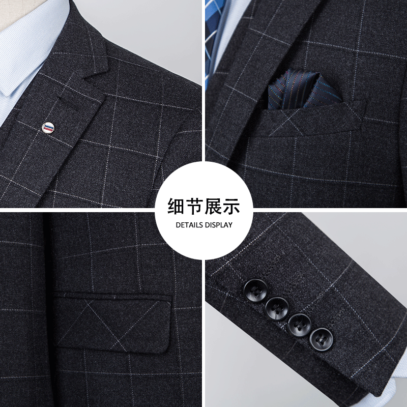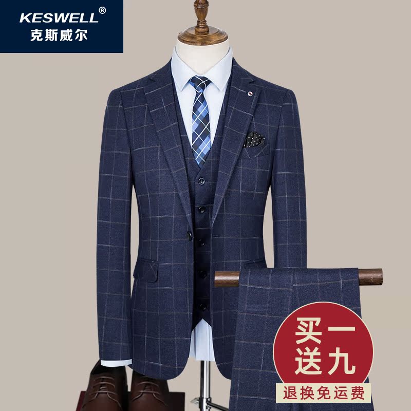 Groom Suit Suit Men's Three-piece Korean Slim Plaid Suit Business Casual Formal Wedding Dress Groomsmen