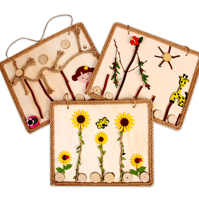 Creative DIY Log Painting Nature Twigs Wood Chips Handmade Materials Bag Nursery School Wood Art Children Elementary School Children