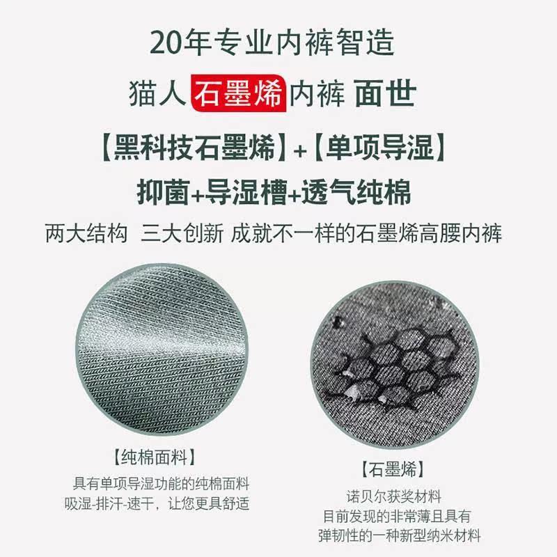 Cat people underwear female cotton high waist middle-aged large size 200 catties fat mm graphene antibacterial cotton belly briefs