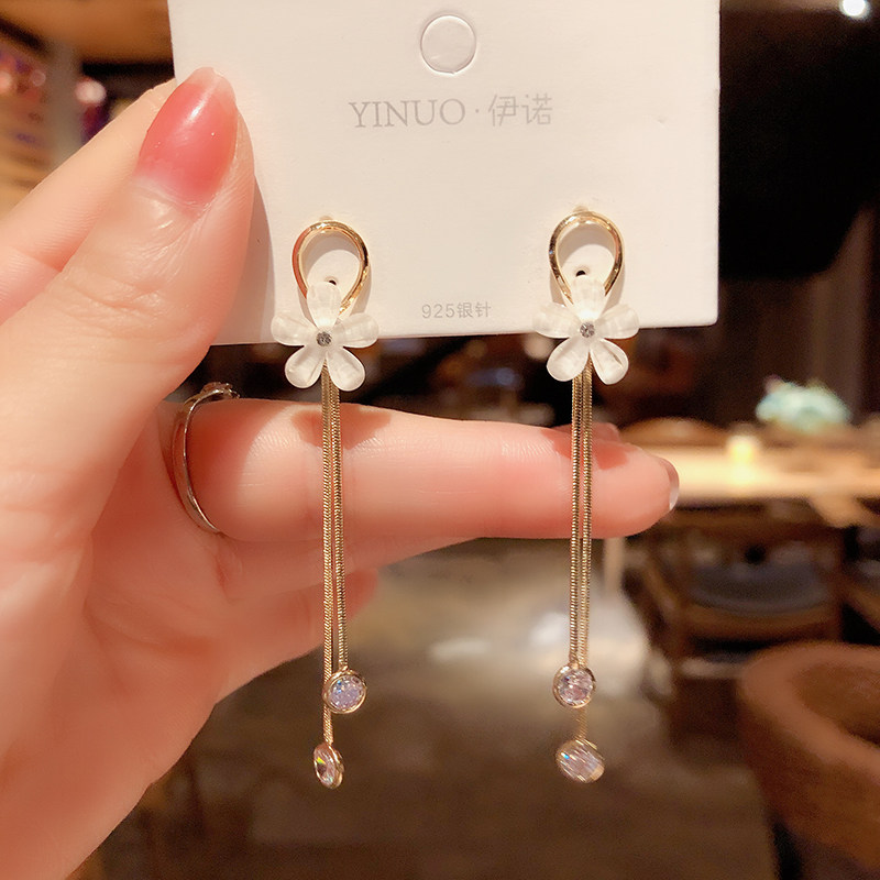 s925 silver needle ear pin temperament crystal petal flow Sulong version earrings female minimalist Little fresh South Korean earbuke ornament