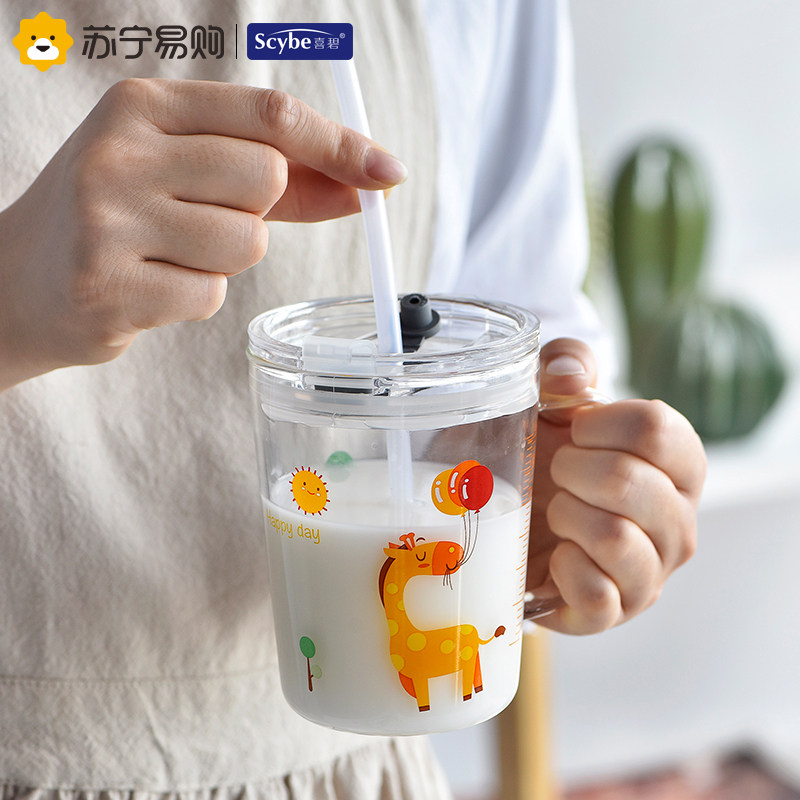 Hibi children's milk cup big baby drink milk cup bubble milk powder breakfast straw glass with scale household cup