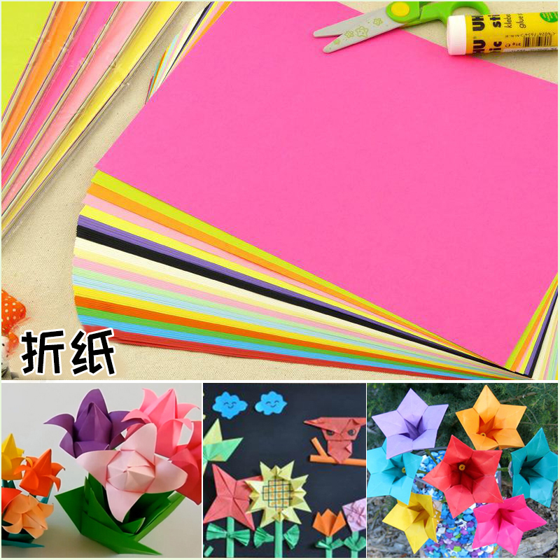 Colour photocopy paper a4 Color folding paper mixed colour printing photocopy paper Kindergarten large sheet production of rose DIY multifunction children Thousand Paper Cranes Laminated handmade Paper Material Thick Handmade Paper Material Square