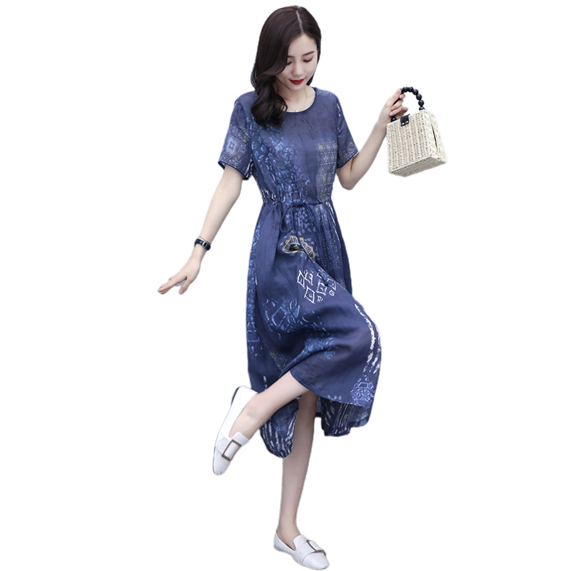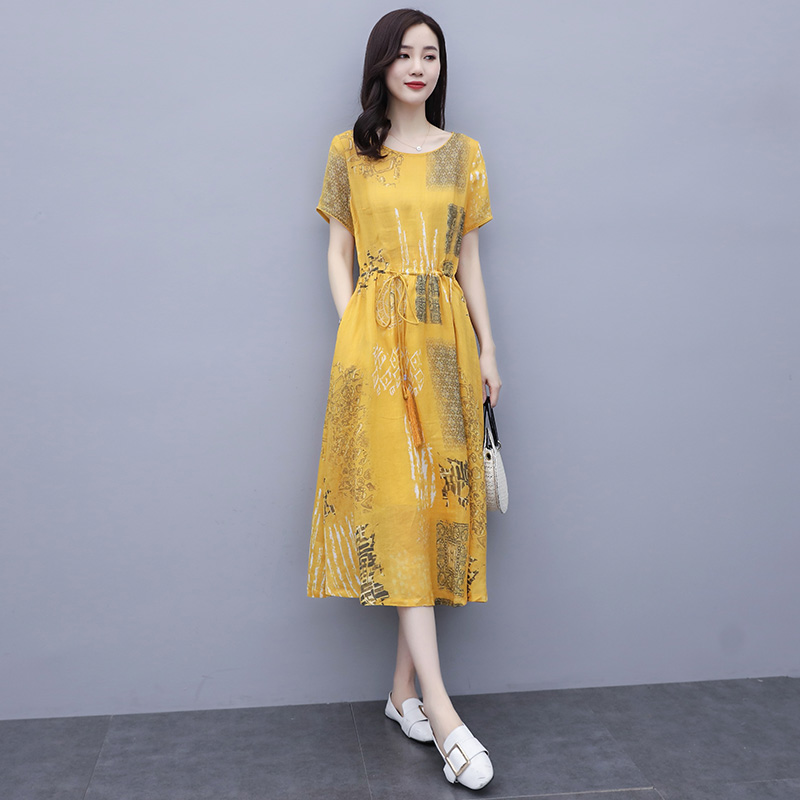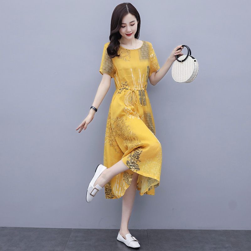 Cotton and linen dress women's summer dress 2022 new large size women's summer thin section thin temperament casual linen skirt