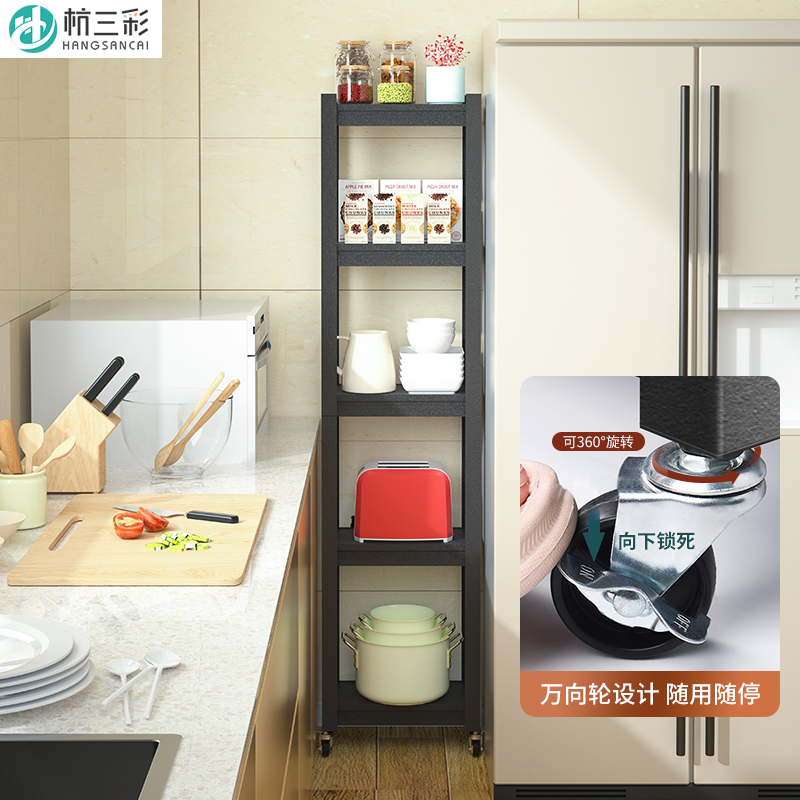 Kitchen crevice shelf Floor-standing multi-layer ultra-narrow refrigerator side side gap storage pot bowl finishing rack with wheels