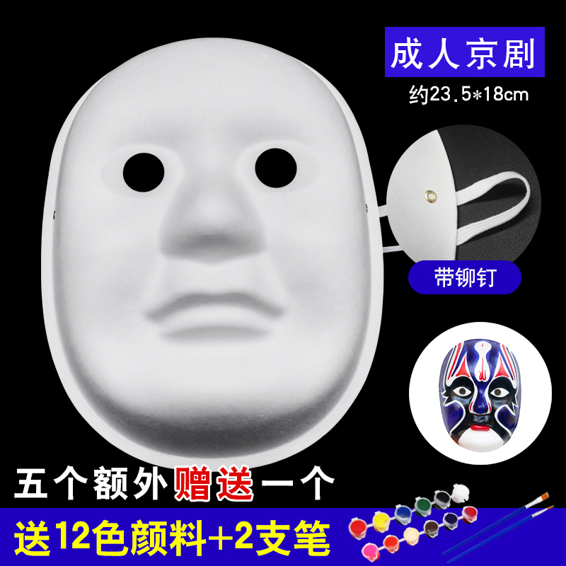 Blank Peking Opera mask diy children's hand-painted white embryo pulp full face mask half face white fox mask