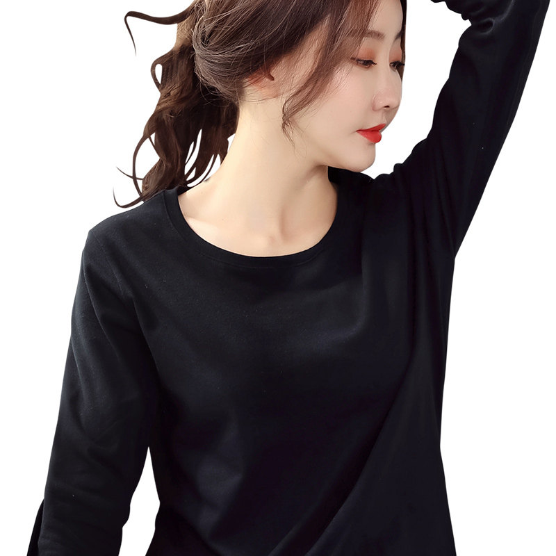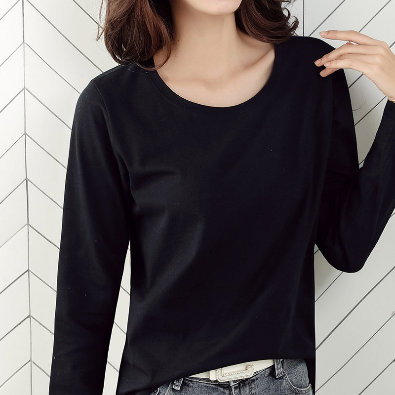 Long sleeve t shirt women in Han Edition with pure cotton blouse 2022 new black air and autumn loose tops