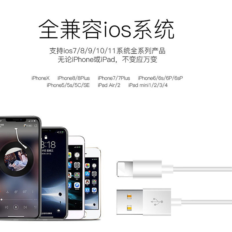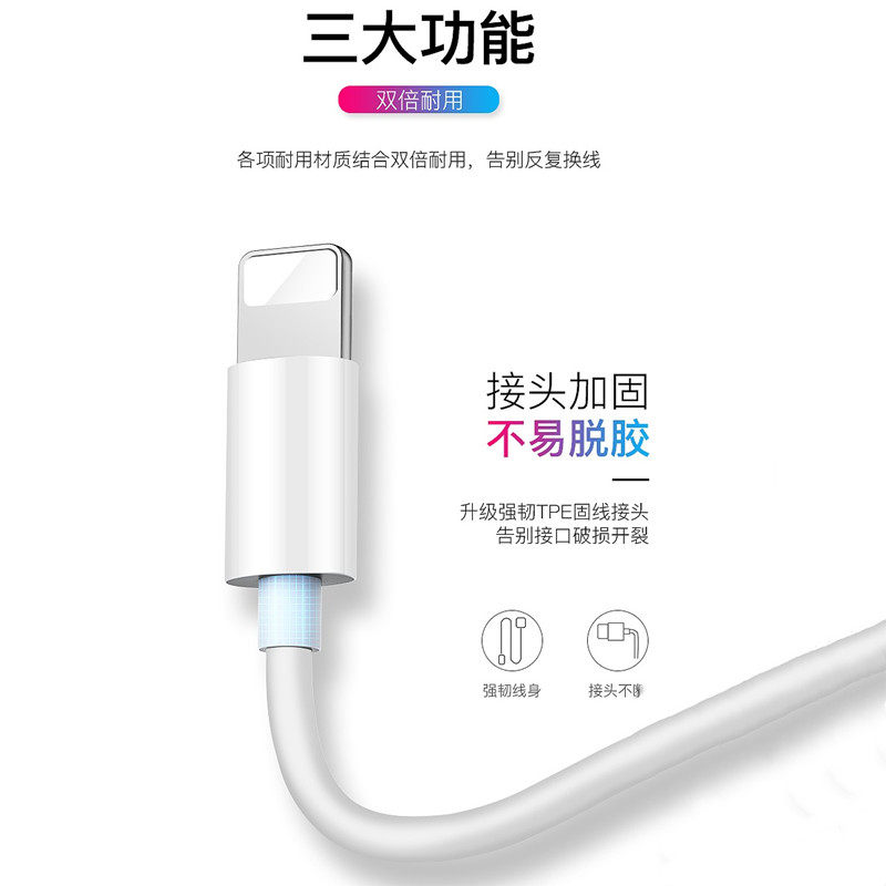 Apple data cable iPhoneX fast charge 6s mobile phone ipad charging cable iPhone7p 8plus lengthened rush Xs short 8P flat charge 2 meters 6 7 8 flash charge