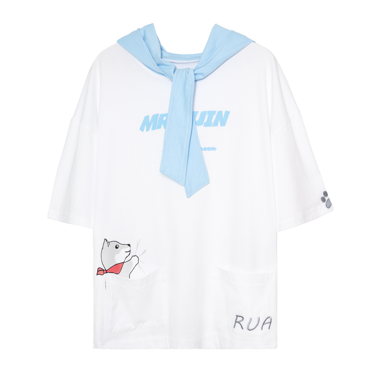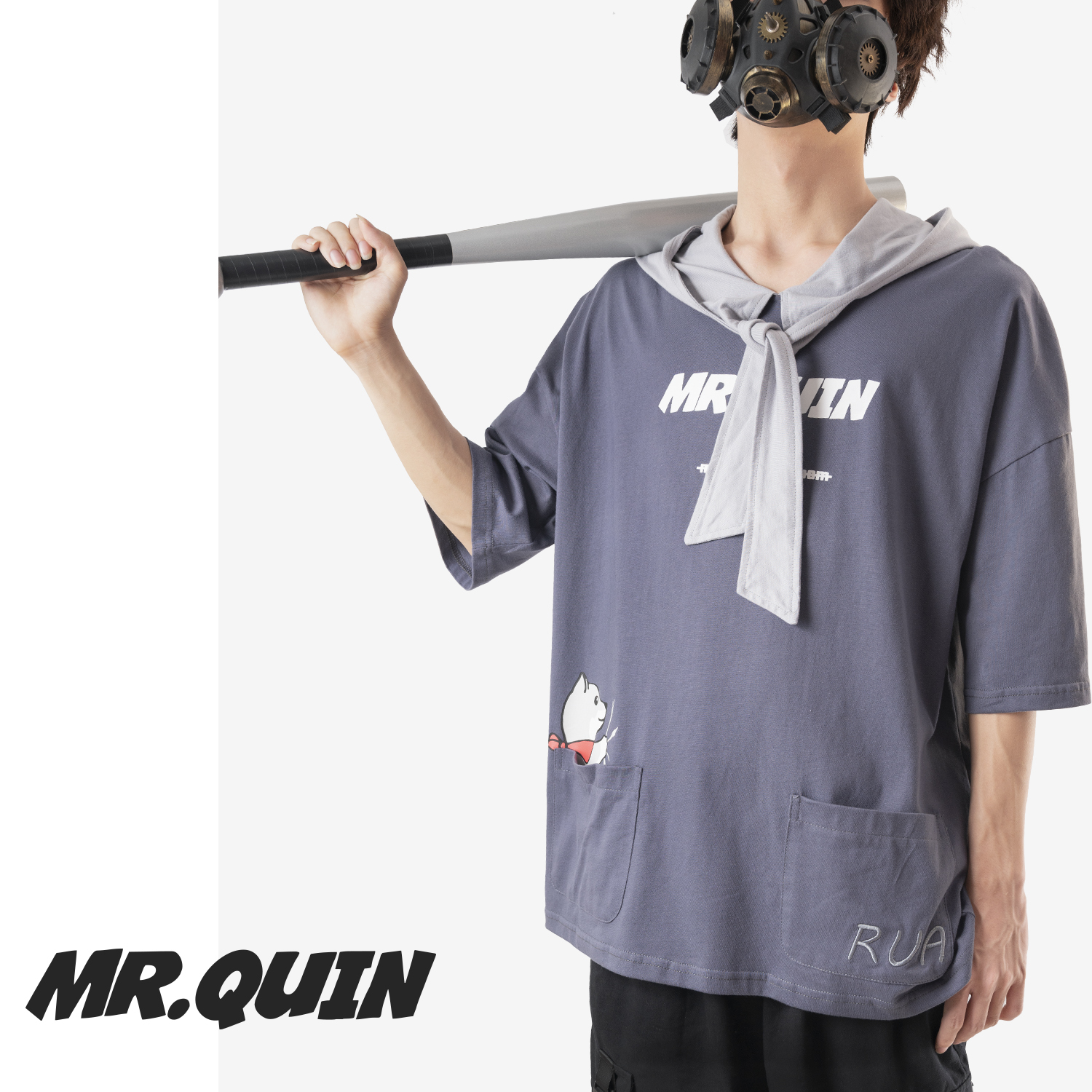 Saibo punk (with cards) forced to open the Qin Meow Meow Clip Doll Machine Qin Penguin Cap Pocket T Black Hat Hood T Deep Grey T-shirt Belongs Casual to fix a Primary One Code Oh