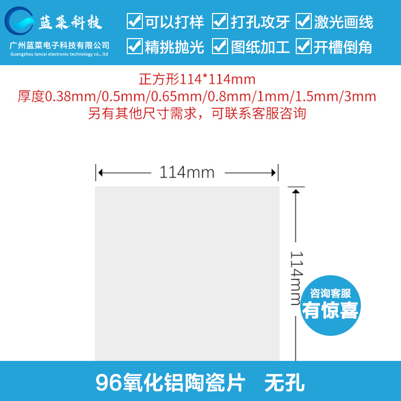 96 alumina-free ceramic sheet Substrate Insulation High Temperature Resistant High Thermal Conductive Abrasion Resistant Ceramic Spacer 114 * 114mm