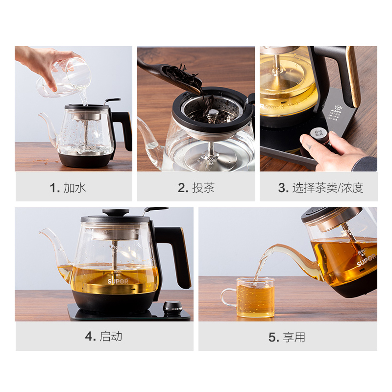 Supoir Cooking Tea Instrumental Home Fully Automatic Steam Teapot Black Tea Steamed Tea Machine Small Office Glass Flower Teapot