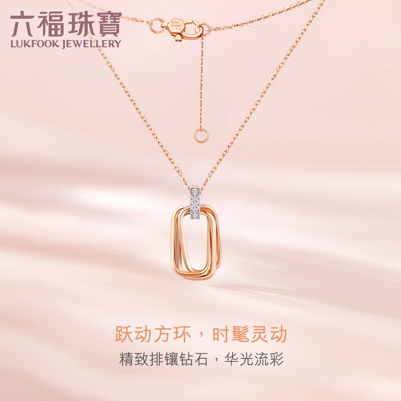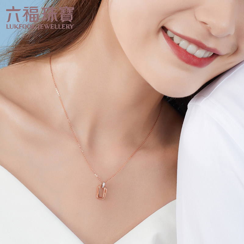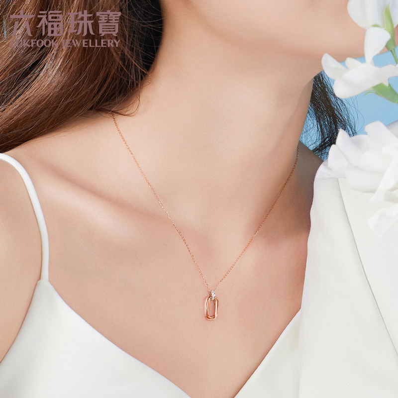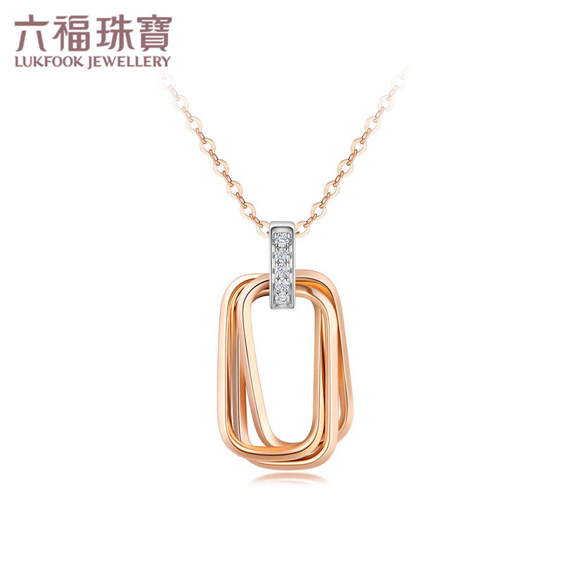 Luk Fook Jewelry Interlocking Sleeve 18K Gold Diamond Necklace Women's Fancy Gold Pendant Price bTDSKN0004RW