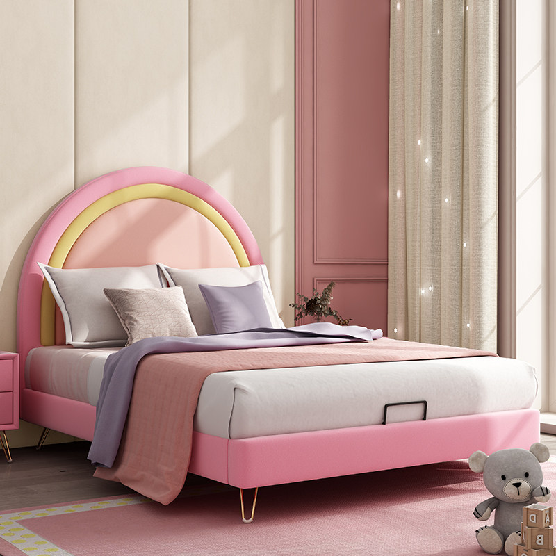 Nordic boy bed children's rainbow light luxury soft foreskin bed boys single bed solid wood 1 5 meters storage can be customized