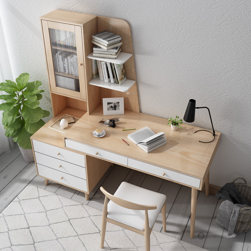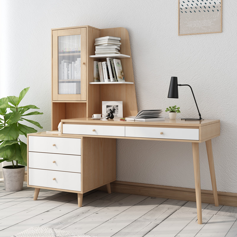 Nordic log color bookcase desk one bookshelf combination study desk home student computer desktop desk