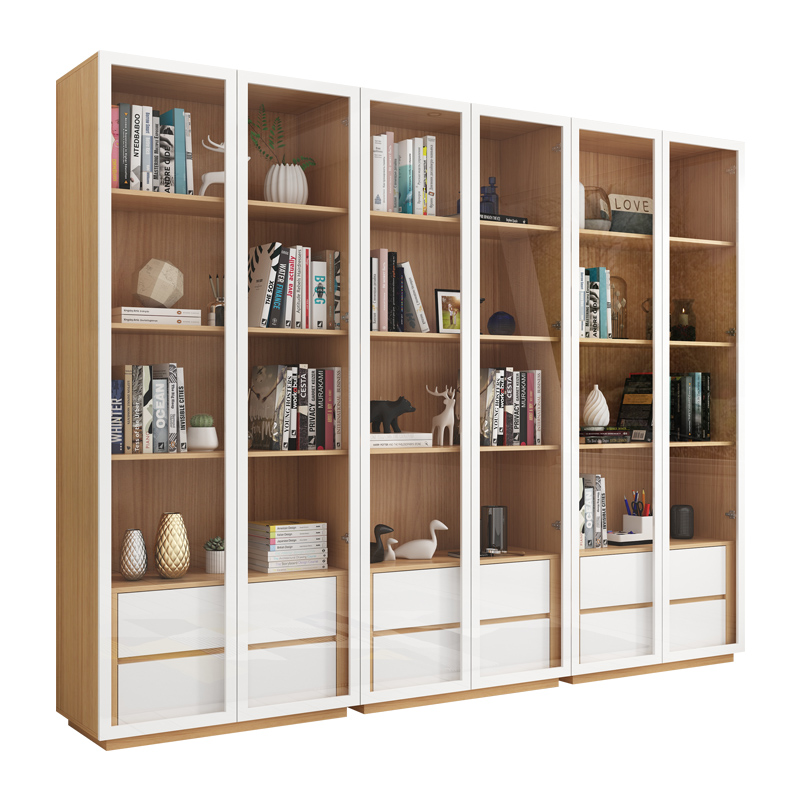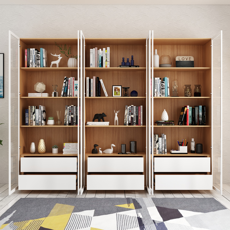 Nordic log color glass door bookcase shelf bookshelf floor-to-ceiling family living room space-saving combination bookcase storage