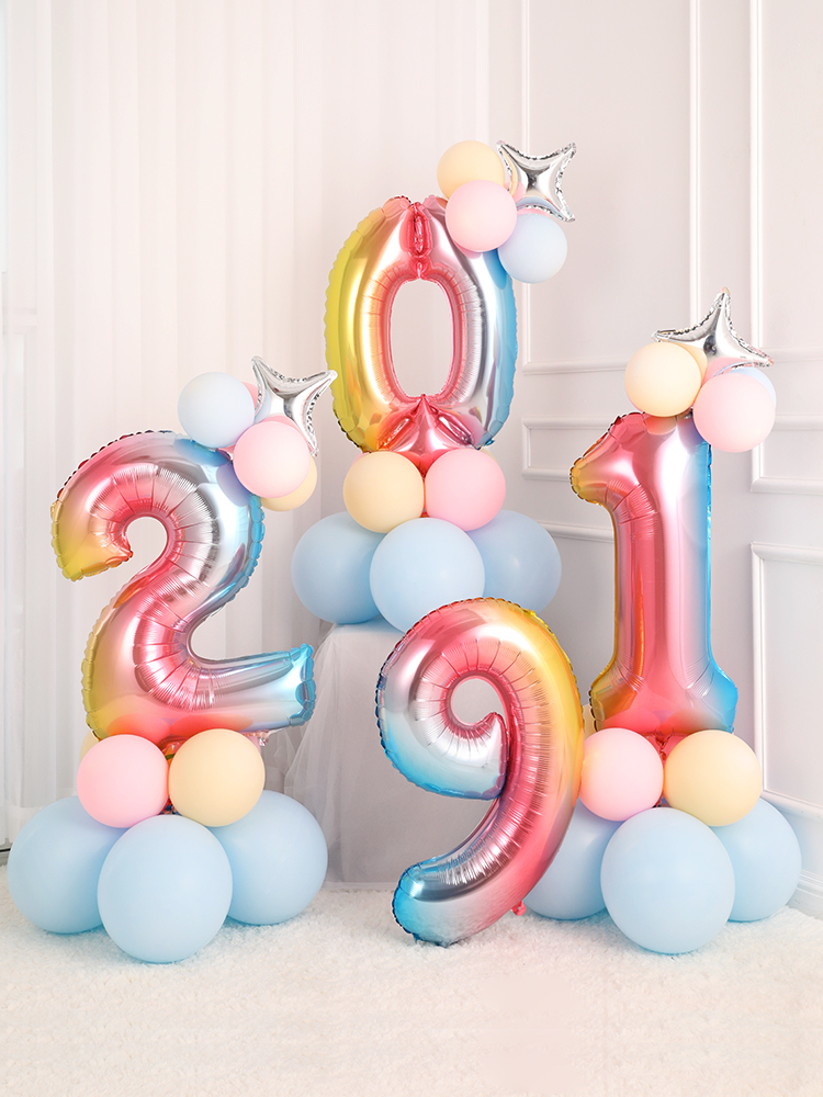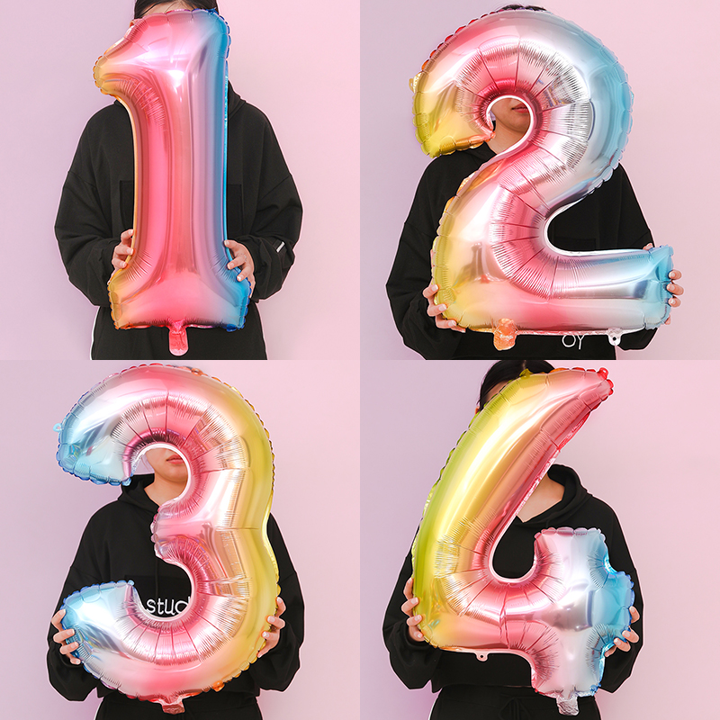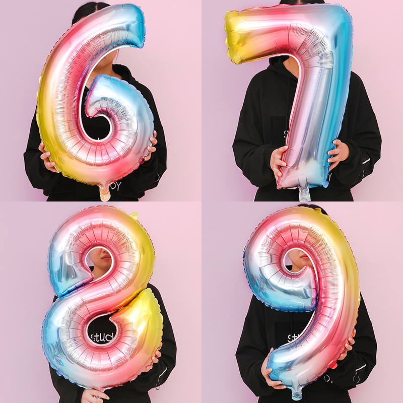 32-inch aluminum film rainbow digital road lead children's birthday party 09-year-old baby clothing decoration background wall scene layout