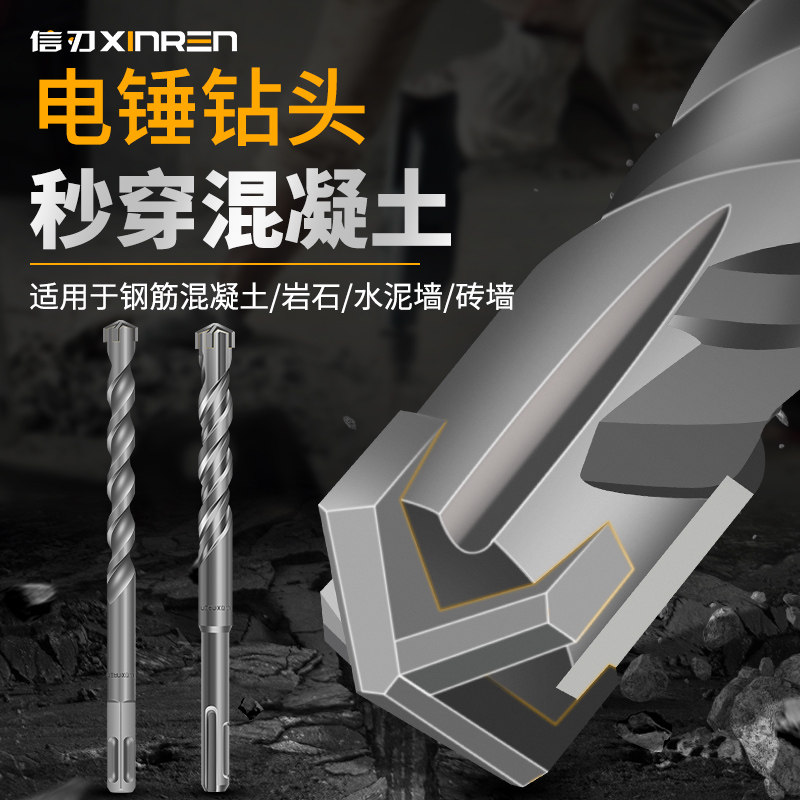 Electric hammer drill bit alloy cross impact drill bit square handle four pit round handle two slots through concrete drilling drill bit