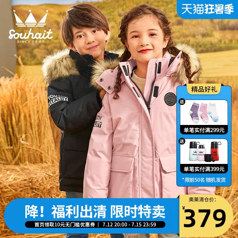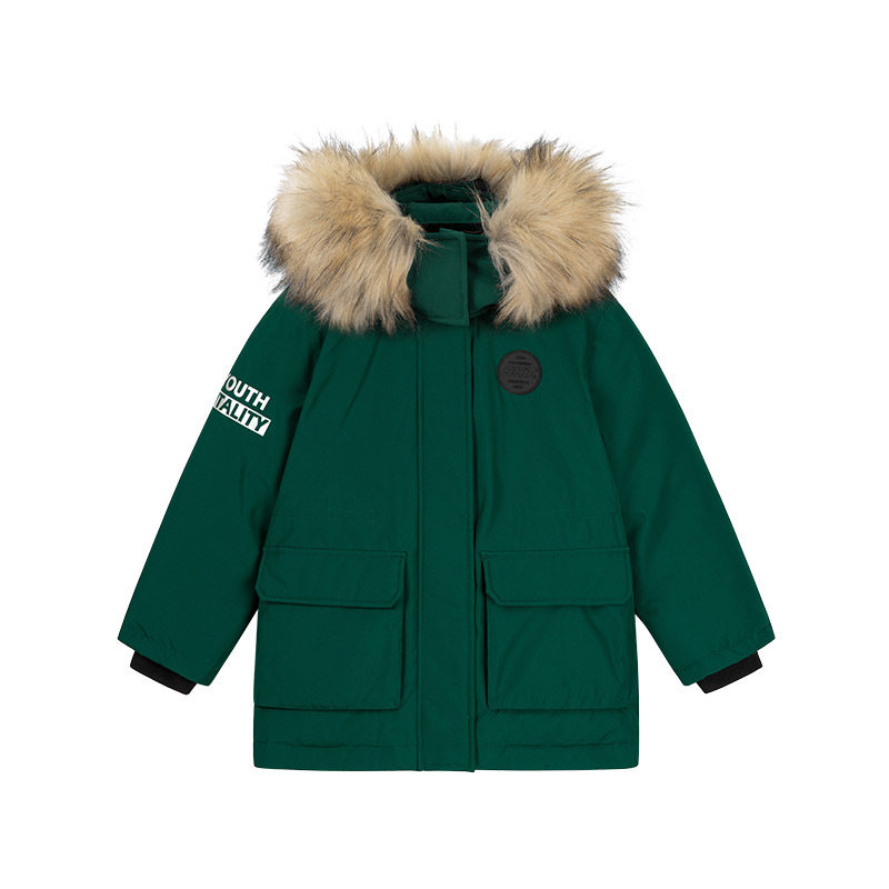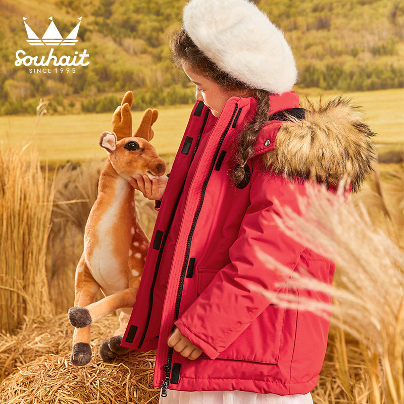 Water chili girl girl's down clothes woolen collar duck down thickened warm new children with long prints overcome