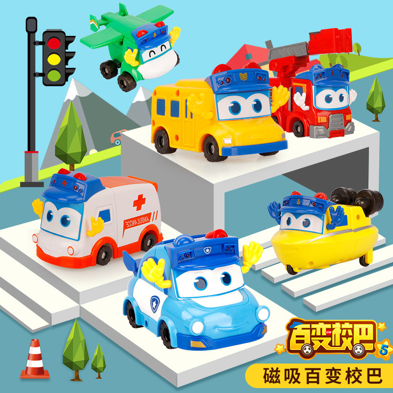 Genuine 100 Variable School Bar Children Toy Deformation Engineering Car Body Robot Suit 6 Goethe 3-8 The six-in-one