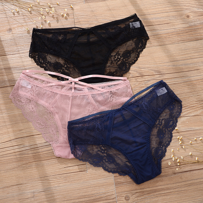 2 Sexy Briefs Lace Hollowed-out Transparent Clairvoyant seductive Tiny pants Love lingerie Lingerie Passion Teasing