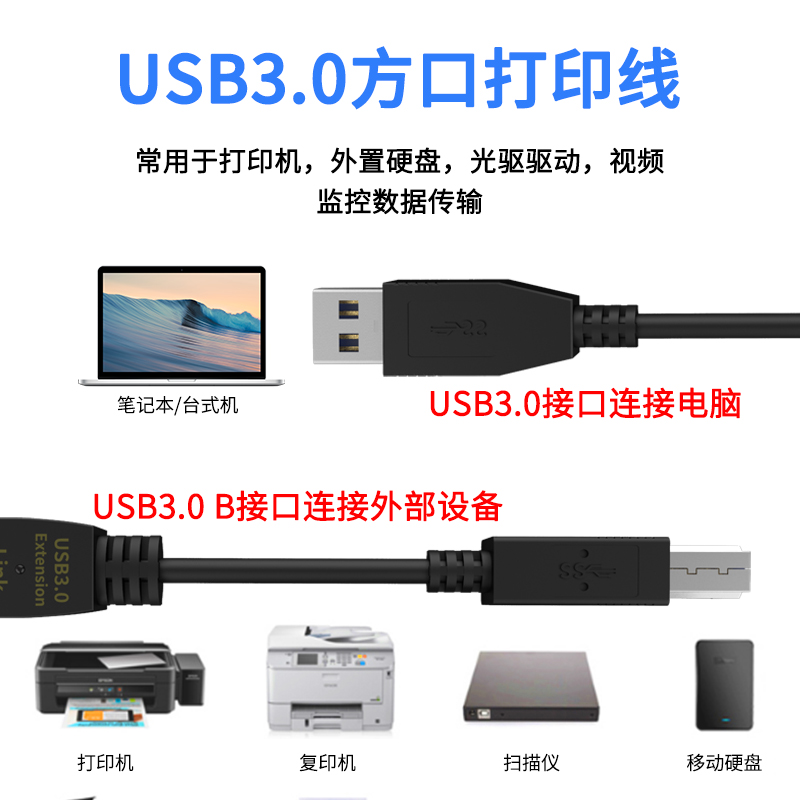 Uting USB3.0 print extension cable square port with IC camera hard disk connected to the computer high-speed data transmission line