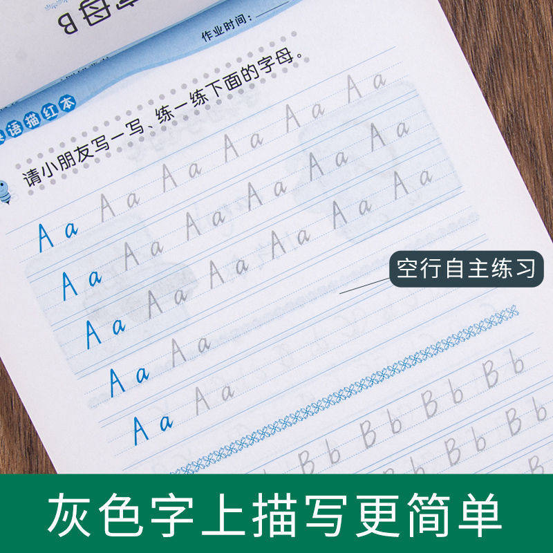 26 English alphabet red text words handwritten elementary students in the first 123rd grade English transcript
