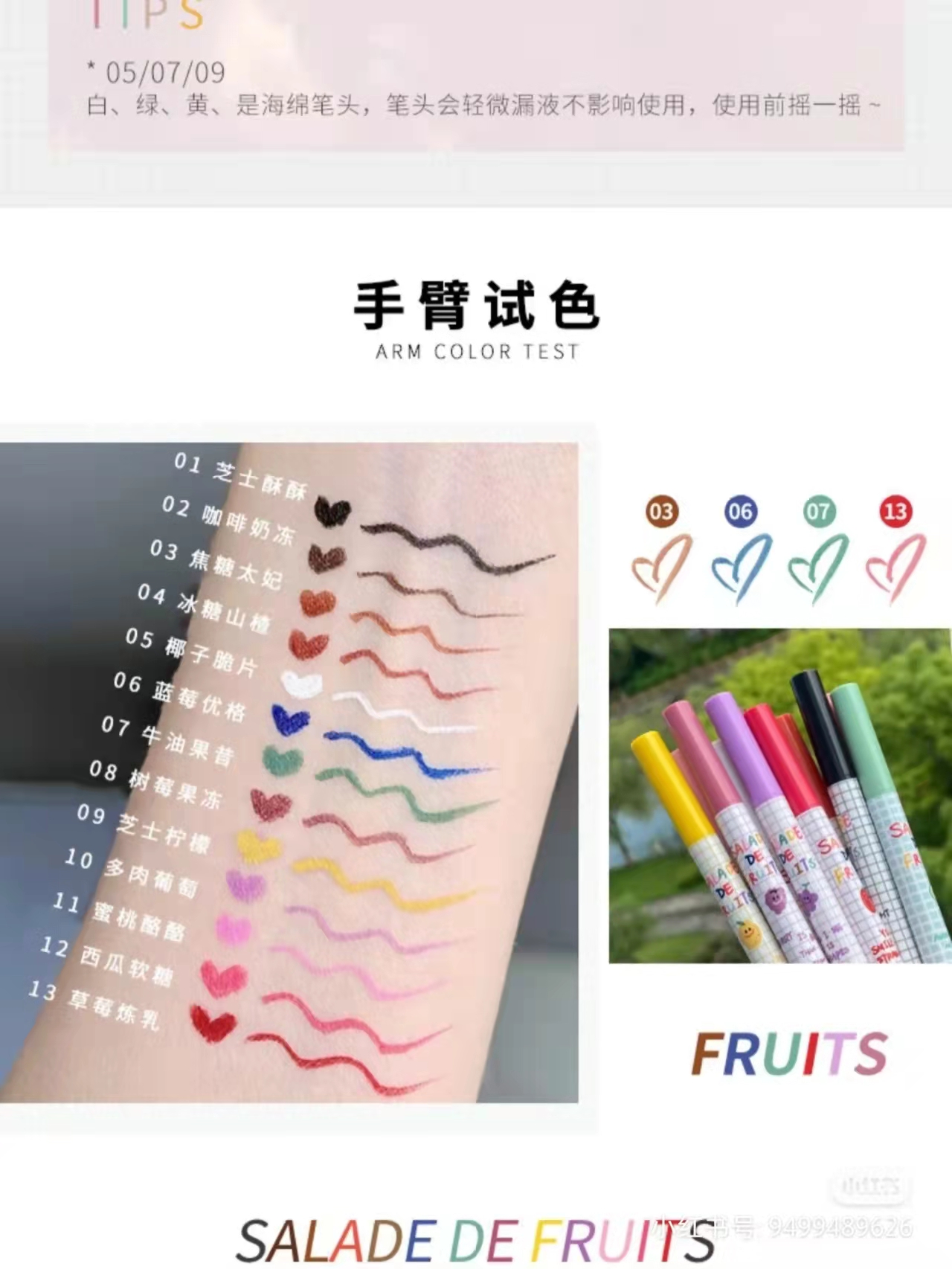 Flortte Floral Leah Fruit Salad Color Eyeliner Pencil White Waterproof Not Smudged