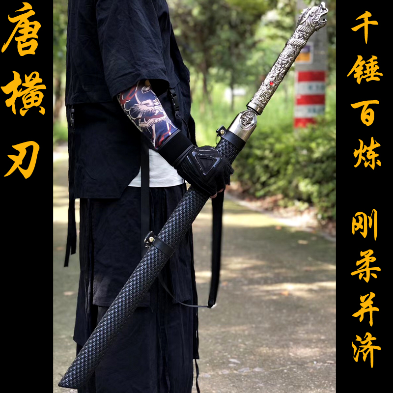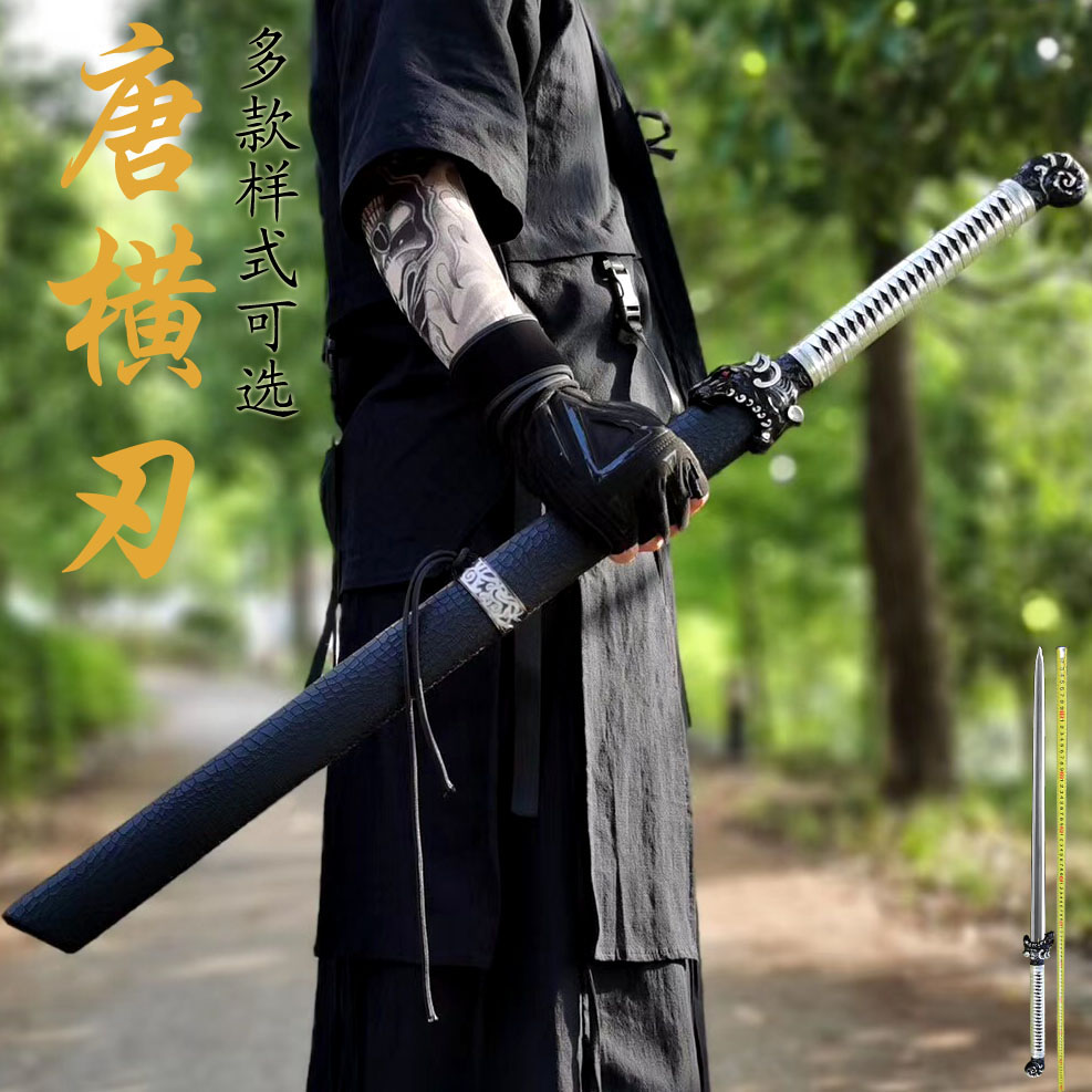 Tang horizontal knife integrated self-defense cold weapon long sword Longquan City embroidered spring manganese steel ancient treasure sword town house sword unopened blade